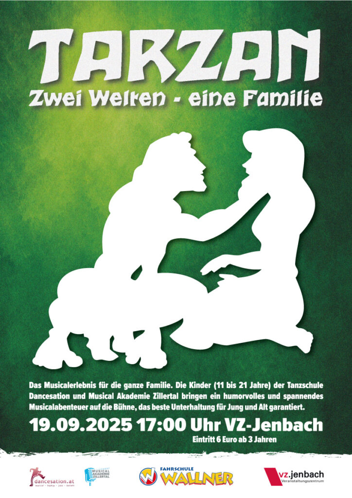 Mit großer Spannung wird die diesjährige Musicalproduktion der Musical Akademie und Tanzschule Dancesation erwartet. Am Freitag, den 19. September 2025, verwandelt sich das Veranstaltungszentrum Jenbach (VZ-Jenbach) in einen wilden, lebendigen Dschungel – mit der spektakulären Inszenierung von „Tarzan – Das Musical“.